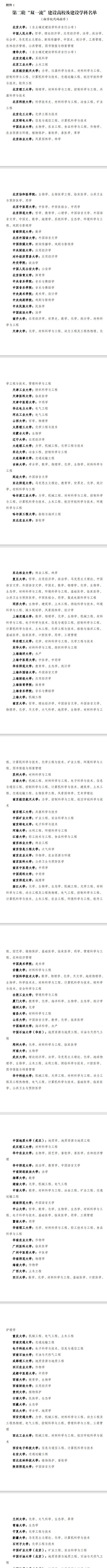 2022年2月14日,根據(jù)國(guó)務(wù)院《統(tǒng)籌推進(jìn)世界一流大學(xué)和一流學(xué)科建設(shè)總體方案》,以及教育部、財(cái)政部、國(guó)家發(fā)展改革委《關(guān)于深入推進(jìn)世界一流大學(xué)和一流學(xué)科建設(shè)的若干意見(jiàn)》和《統(tǒng)籌推進(jìn)世界一流大學(xué)和一流學(xué)科建設(shè)實(shí)施辦法(暫行)》,經(jīng)專(zhuān)家委員會(huì)認(rèn)定,教育部等三部委研究并報(bào)國(guó)務(wù)院批準(zhǔn),公布第二輪“...