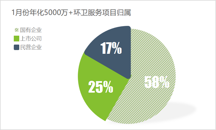 環(huán)境司南監(jiān)2022年1月份測數(shù)據(jù)顯示,截止1月27日,1月份已開標的12個年化額5000萬+環(huán)衛(wèi)服務(wù)項目,其中7個項目由國企中標,占比高達58%,接近六成。 環(huán)境司南監(jiān)2022年1月份測數(shù)據(jù)顯示,截止1月27日,1月份已開標的12個年化額5000萬+環(huán)衛(wèi)服務(wù)項目,其中7個項目由國企中標,占比高達58...