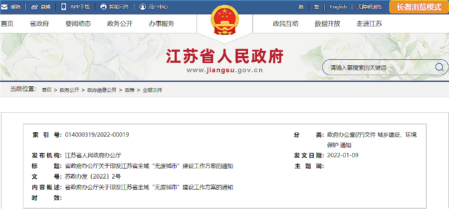 日前,《江蘇省全域“無廢城市”建設(shè)工作方案》印發(fā),《方案》指出,到2025年,完成全域“無廢城市”建設(shè)任務(wù),4個以上設(shè)區(qū)市建成國家“無廢城市”。到2030年,所有設(shè)區(qū)市均達到國家“無廢城市”建設(shè)要求。 省政府辦公廳關(guān)于印發(fā)江蘇省全域“無廢城市”建設(shè)工作方案的通知 (蘇政辦發(fā)〔2022〕2號) 各市、...