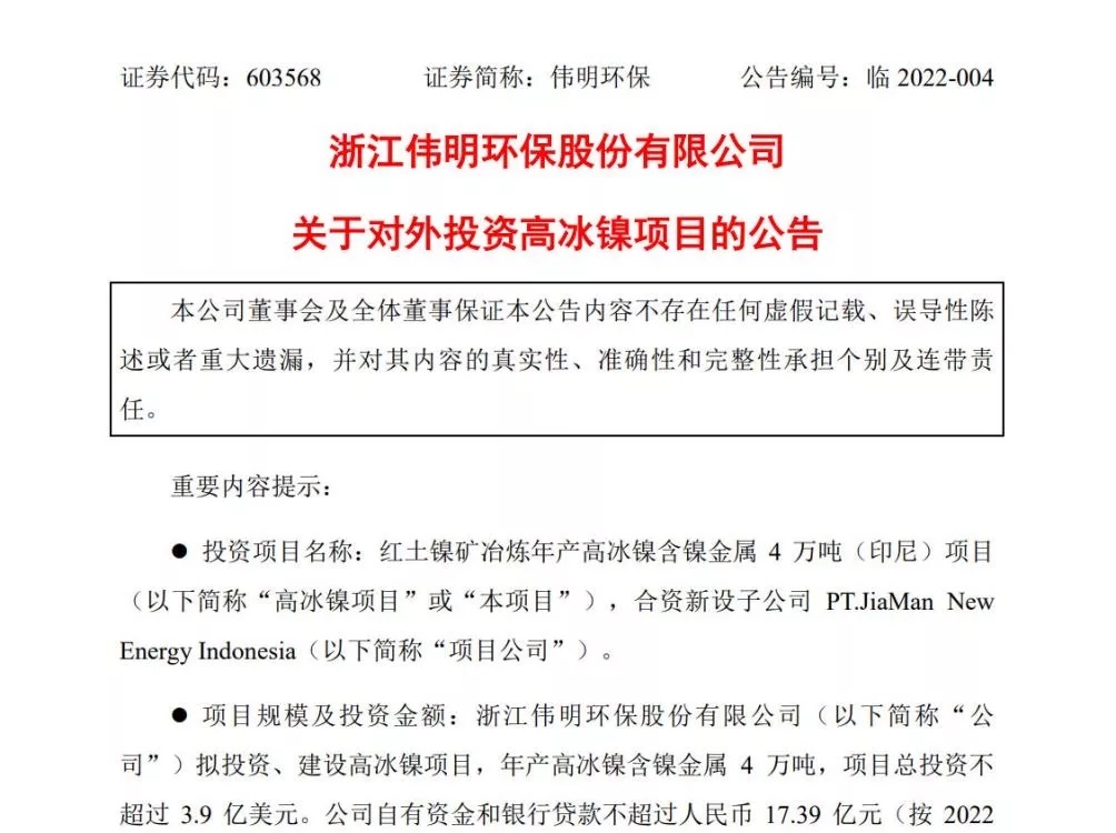 環(huán)保企業(yè)進(jìn)軍新能源領(lǐng)域的越來(lái)越多了。 1月5日晚間,偉明環(huán)保發(fā)布公告稱(chēng)進(jìn)軍新能源市場(chǎng),擬在印尼投建高冰鎳項(xiàng)目。 前一天,1月4日,旺能環(huán)境股份有限公司也發(fā)布公告,擬通過(guò)收購(gòu)方式,布局新能源鋰電材料綠色循環(huán)再利用產(chǎn)業(yè)。 再往前的2021年12月8日晚間,中國(guó)天楹還發(fā)布公告稱(chēng),以自有資金或自籌資金方式成...