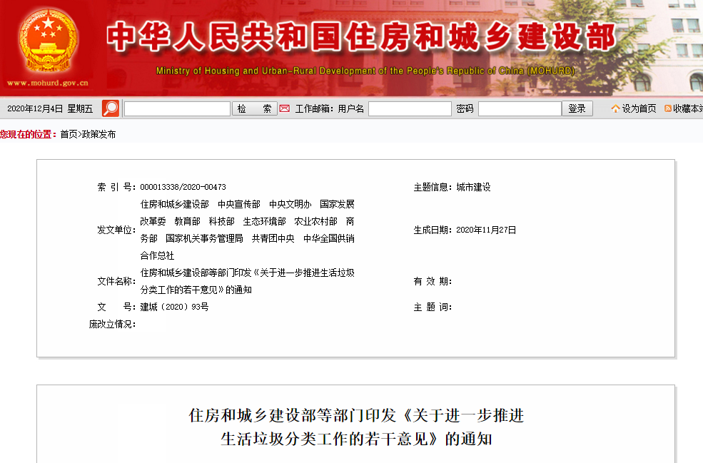 文章導(dǎo)讀12月4日,住建部、中共中央委員會(huì)宣傳部等12部門印發(fā)《關(guān)于進(jìn)一步推進(jìn)生活垃圾分類工作的若干意見》的通知(以下簡(jiǎn)稱《通知》)。《通知》全文如下:住房和城鄉(xiāng)建設(shè)部等部門印發(fā)《關(guān)于進(jìn)一步推進(jìn)生活垃圾分類工作的若干意見》的通知各省、自治區(qū)、直轄市人民政府,中央和國(guó)家機(jī)關(guān)有關(guān)部門、單位:《關(guān)于進(jìn)一步...
