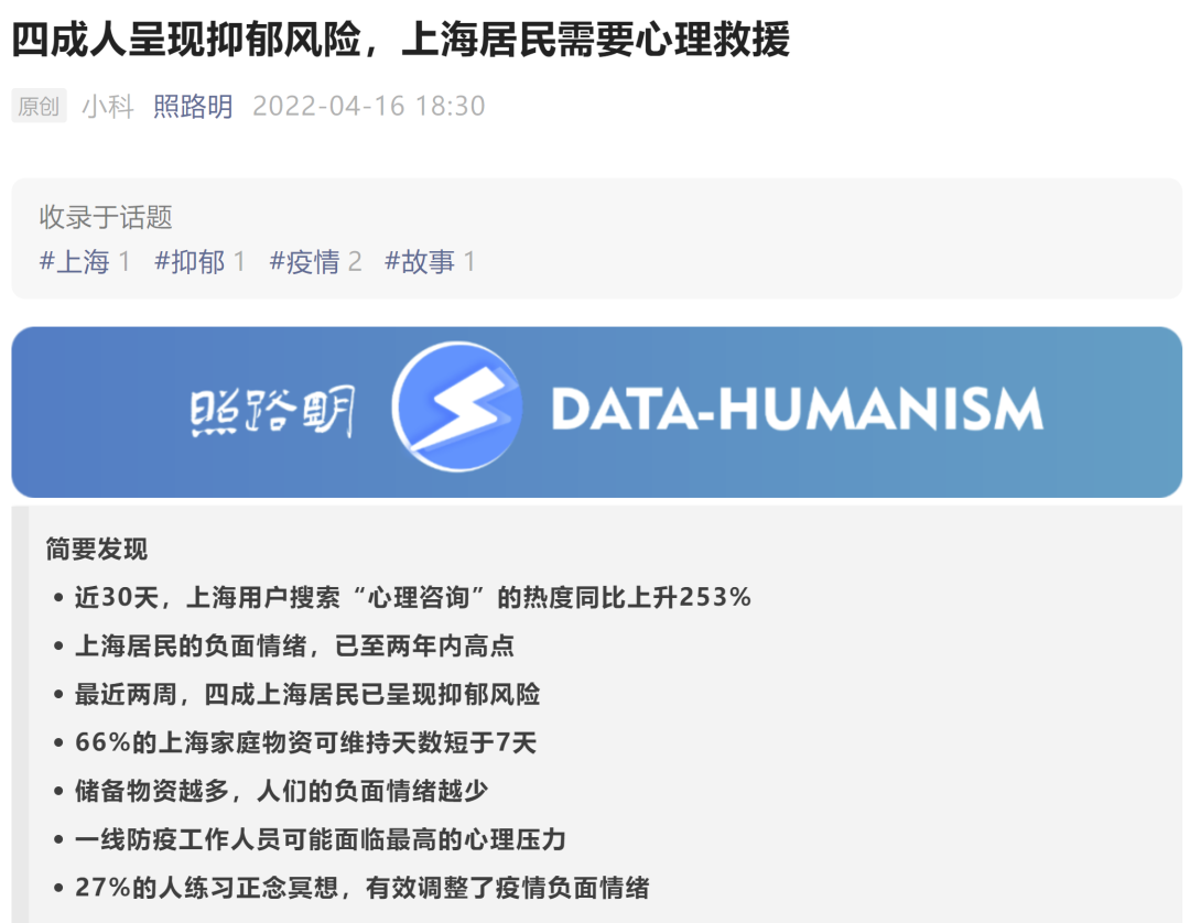 據(jù)心理領(lǐng)域的公眾號“照路明”,說現(xiàn)在上海疫情嚴重,大家隔離短的已經(jīng)半個多月,長的一個多月,近四成上海人呈現(xiàn)抑郁風(fēng)險,需要救援。 圖片來自網(wǎng)絡(luò) 其實,這些心理救援是非常重要的。每個人碰到這種百年不遇的疫情和居家隔離,都會出現(xiàn)或多或少的心理問題。如果能打通心理咨詢熱線最好,可以聽聽專業(yè)人士的輔導(dǎo)。如果搶...