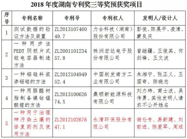 喜報(bào)!永清環(huán)保榮膺2018年度湖南省專利獎