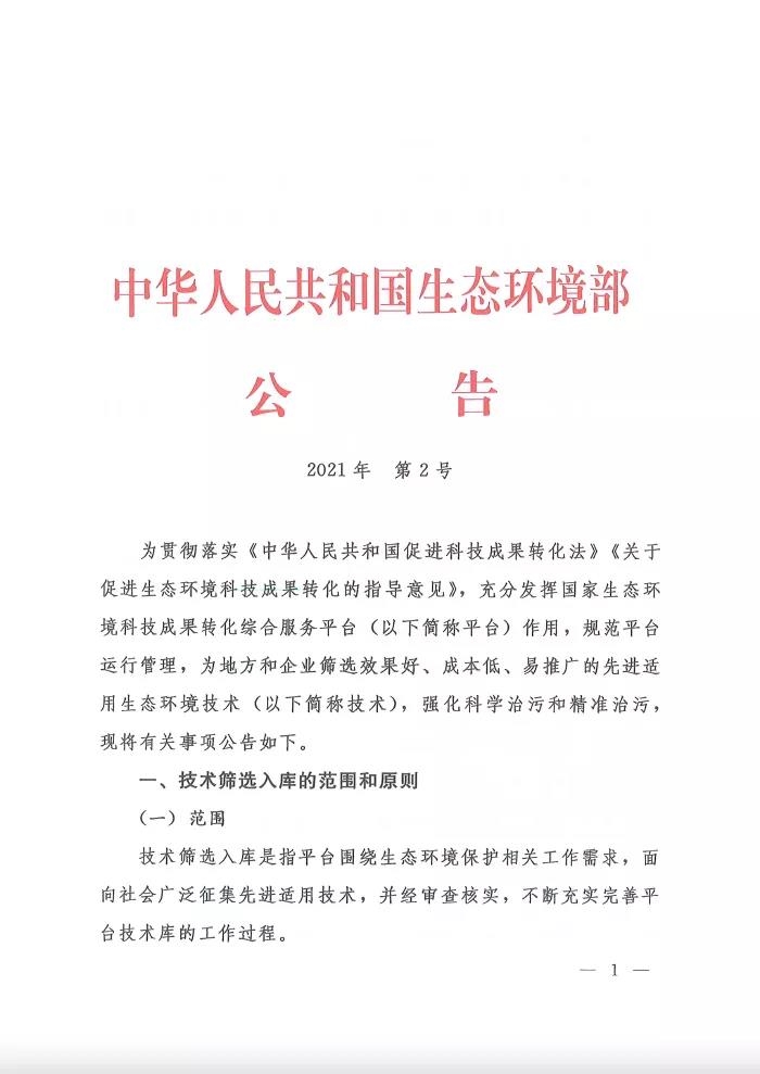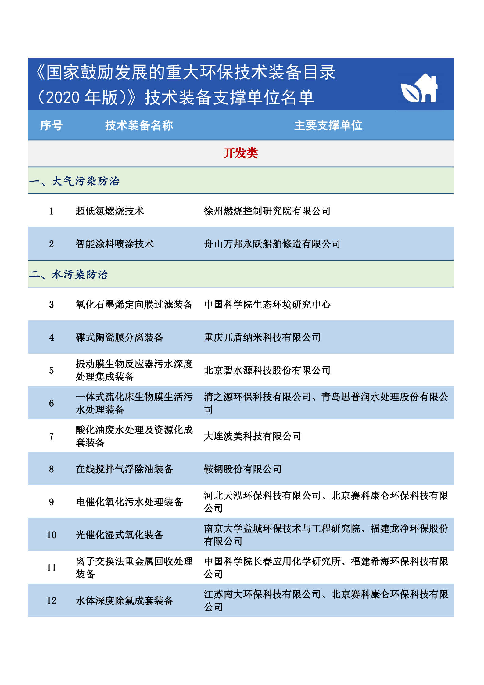 2020年12月25日,工業(yè)和信息化部、科學技術部、生態(tài)環(huán)境部聯(lián)合制定的《國家鼓勵發(fā)展的重大環(huán)保技術裝備目錄(2020年版)》經(jīng)過征意后正式公告。 與征求意見稿相比,公示稿由165項變?yōu)榱?62項。中華人民共和國工業(yè)和信息化部 科學技術部 生態(tài)環(huán)境部公告2020年第52號 為加快先進環(huán)保裝備研發(fā)和應...