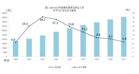 2018年5月15日,國(guó)家統(tǒng)計(jì)局發(fā)布了2017年主要數(shù)據(jù)。2017年就業(yè)人員年平均工資為45761元,與2016年的42833元相比,增加了2928元,同比名義增長(zhǎng)6.8%,增速比2016年回落1.4個(gè)百分點(diǎn)??鄢飪r(jià)因素,2017年全國(guó)城鎮(zhèn)私營(yíng)單位就業(yè)人員年平均工資實(shí)際增長(zhǎng)5.0%。分行業(yè)門類看,...