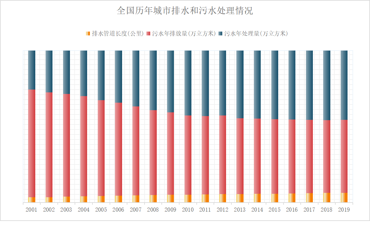 住建部數(shù)據(jù)顯示,2019年,我國(guó)城市污水排放量為5546474萬立方米,污水處理廠達(dá)到2471座,處理能力達(dá)到17863.17萬立方米/日,污水年處理量達(dá)到5258499.39萬立方米,污水處理率為96.81%。 上圖也可以看出,我國(guó)城市污水處理能力隨著污水處理廠的增多顯著上升,污水處理率也是節(jié)節(jié)攀...