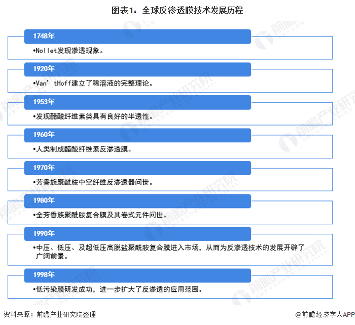 反滲透膜是一種模擬生物半透膜制成的具有一定特性的人工半透膜,是反滲透技術(shù)的核心構(gòu)件。近年來,滲透膜在海水淡化中得到了廣泛應(yīng)用,其市場前景較好,行業(yè)發(fā)展較快。 知名膜制造商紛紛入局 1948年,Nollet首次發(fā)現(xiàn)滲透現(xiàn)象開始,全球各國開始不斷研發(fā)反滲透膜技術(shù),到20世紀(jì)90年代出現(xiàn)低壓反滲透復(fù)合,為...