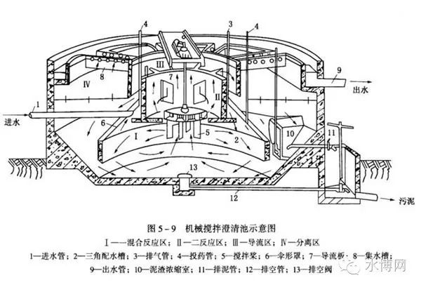 什么是?其基本原理是什么?機械攪拌澄清池將混合、絮凝反應(yīng)及沉淀工藝綜合在一起,組成示意見圖5—9。池中心有一個轉(zhuǎn)動葉輪,將原水和加人藥劑及澄清區(qū)沉降下來的回流污泥混合,促進形成較大絮體。量是進水量的3~5倍,為保持池內(nèi)懸浮物濃度穩(wěn)定,要及時排出多余的污泥。從進水管進入環(huán)形配水三角槽,混凝劑通過投藥管...