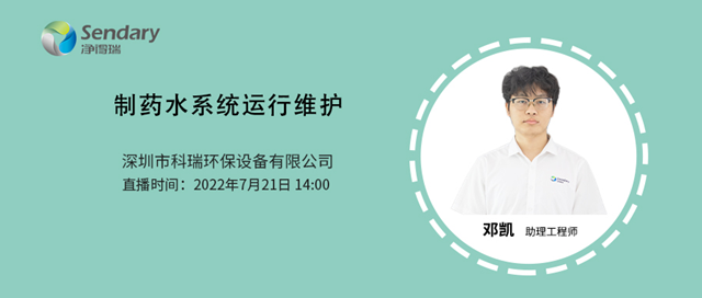 純化水設(shè)備及注射用水設(shè)備如何做好維護(hù),才能確保設(shè)備持續(xù)穩(wěn)定運行,提高設(shè)備的產(chǎn)水水質(zhì)? 2022年7月21日14:00,凈得瑞將圍繞“制藥水系統(tǒng)運行維護(hù)”主題進(jìn)行分享為您解惑,精彩不容錯過,敬請關(guān)注!圖一 《制藥水系統(tǒng)運行維護(hù)》點擊圖片進(jìn)入直播間 本次直播主要內(nèi)容有: 1、系統(tǒng)...