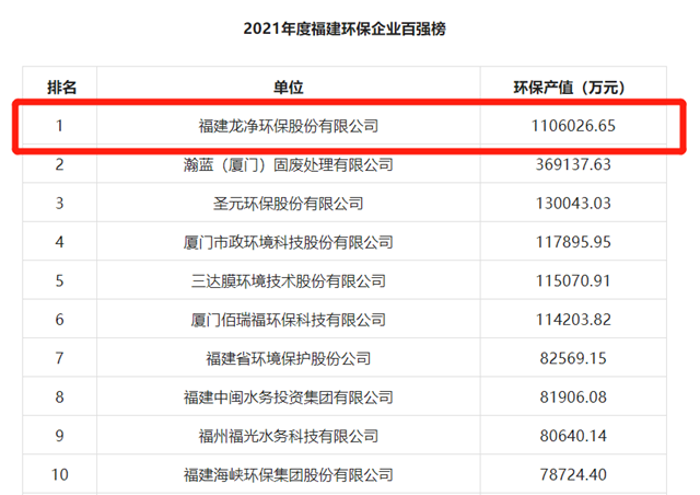 2022年6月6日,福建環(huán)保產(chǎn)業(yè)協(xié)會發(fā)布2021年度福建環(huán)保企業(yè)百強榜名單,龍凈再次榮登百強榜榜首,是全省唯一一家營收超過百億的環(huán)保企業(yè)。 據(jù)悉,福建環(huán)保企業(yè)百強榜是基于2021年度全國環(huán)保產(chǎn)業(yè)重點企業(yè)基本情況調(diào)查產(chǎn)生的,是以各單位當年環(huán)保產(chǎn)值為主要依據(jù)。龍凈2021年年報顯示,營業(yè)收入113億元,...