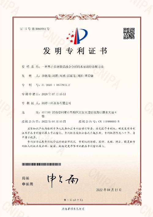 近日,依托中環(huán)水務(wù)牽頭承擔(dān)的2020年度集團(tuán)公司重大科技創(chuàng)新項(xiàng)目《智能水廠整體工藝方案》與《生態(tài)型村鎮(zhèn)污水處理技術(shù)工藝包》的技術(shù)成果,“一種基于多源數(shù)據(jù)融合分析的水泵故障診斷方法”和 “一種蠕蟲(chóng)床化糞池”兩項(xiàng)發(fā)明專利獲得國(guó)家知識(shí)產(chǎn)權(quán)局授權(quán)。 &ldqu...