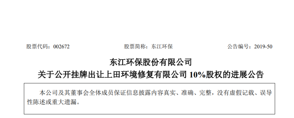 今日,中國環(huán)聯(lián)網(wǎng)獲悉,東江環(huán)保(00895)發(fā)布公告,2018年12月24日,公司第六屆董事會第二十六次會議審議通過了《關(guān)于擬公開掛牌出讓上田環(huán)境修復(fù)有限公司10%股權(quán)的議案》,公司董事會同意通過公開掛牌方式出讓公司持有的上田環(huán)境修復(fù)有限公司10%股權(quán),掛牌底價為人民幣2500萬元。根據(jù)進展,光大環(huán)...